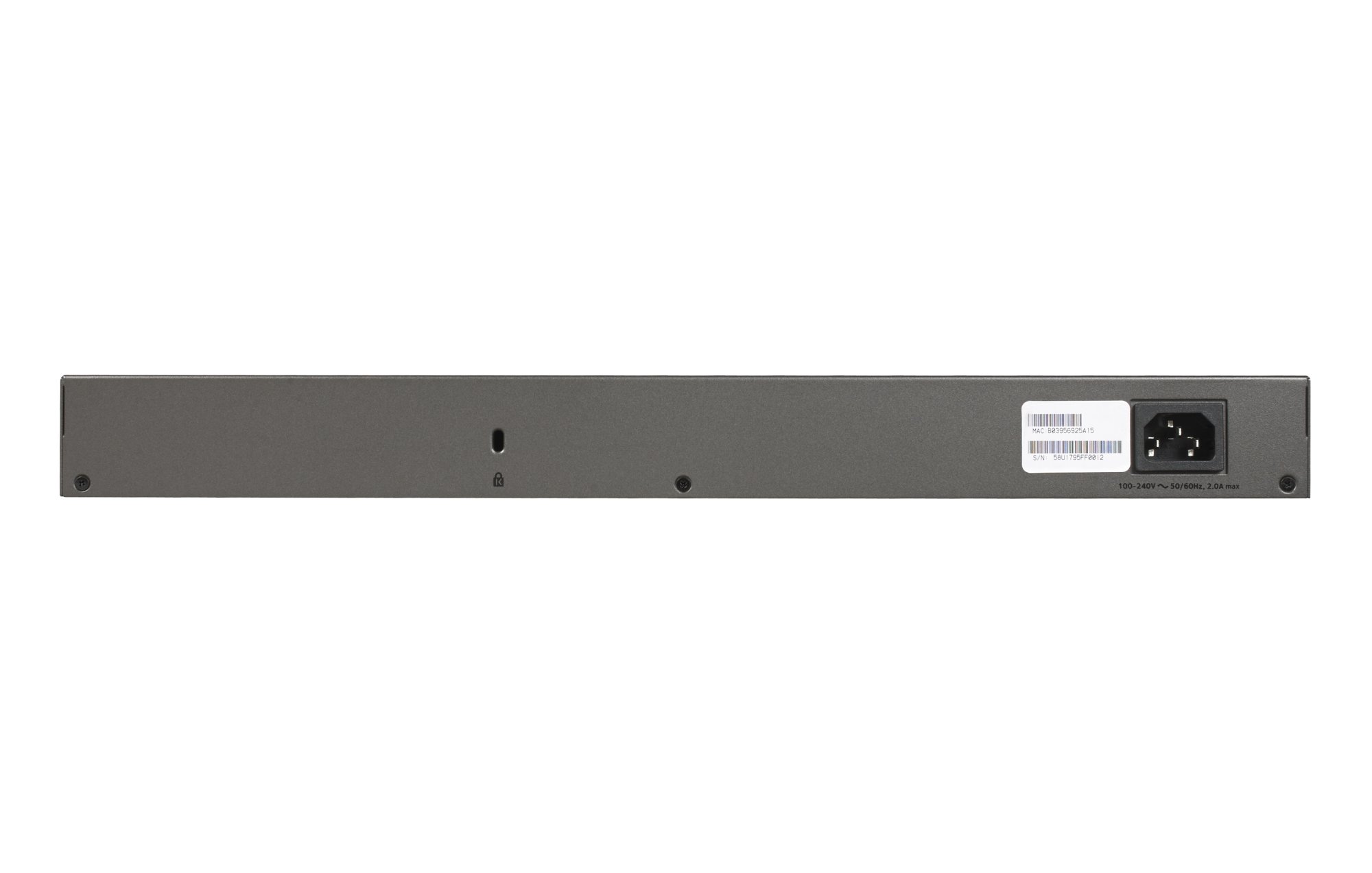 NETGEAR XS724EM. Switch type: Managed, Switch layer: L2. Basic switching RJ-45 Ethernet ports type: 10G Ethernet (100/1000/10000), Basic switching RJ-45 Ethernet ports quantity: 24. MAC address table: 32000 entries, Switching capacity: 480 Gbit/s. Networking standards: IEEE 802.1Q, IEEE 802.1p, IEEE 802.3, IEEE 802.3ab, IEEE 802.3ae, IEEE 802.3an, IEEE 802.3az, IEEE.... Power connector: DC-in jack. Rack mounting, Form factor: 1U